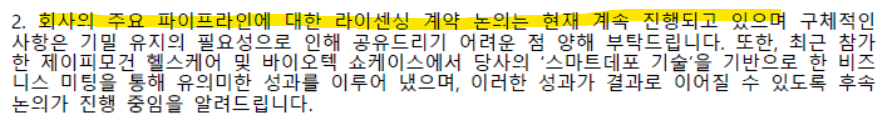 - 회사공지 2024.01.25: 릴리와 협의 지속중