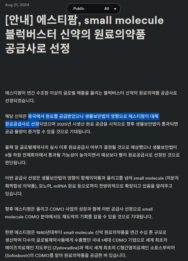 | 생물보안법 수혜주 #에스티팜 (0) | 2024.10.05 |