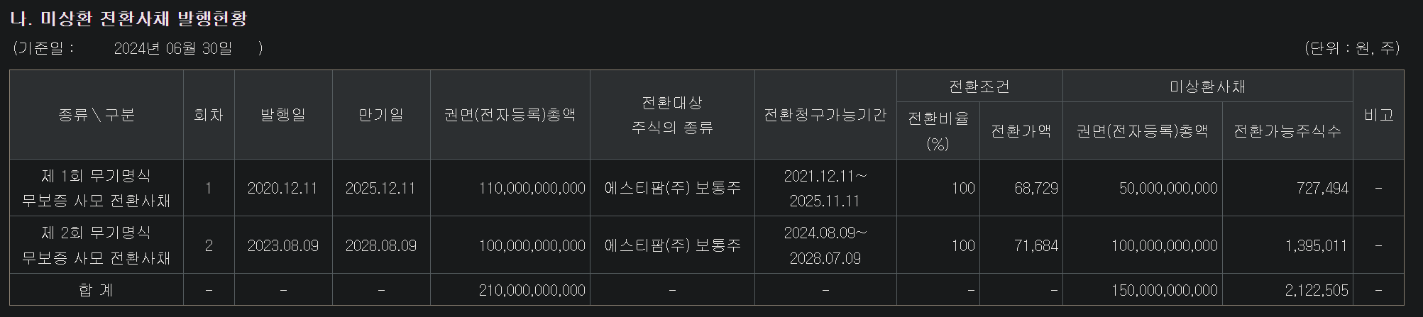 ② 유상증자 결정: 회사는 2,640,000주의 보통주를 발행하여 총 1200억 원을 조달할 계획임
