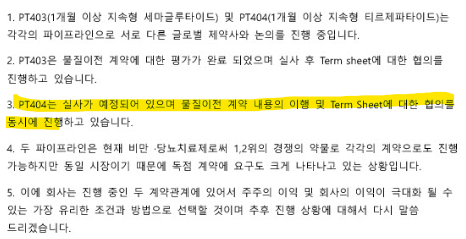 - PT403과 PT404가 핵심 파이프라인