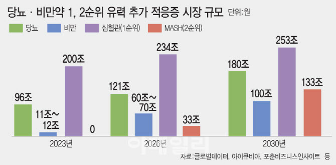 - 비만 시장: 2030년 기준 대략 150조 예상