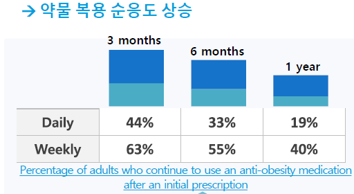 - 현재 비만치료제는 부작용으로 인해 도스 에스컬레이션으로 투여용량 결정