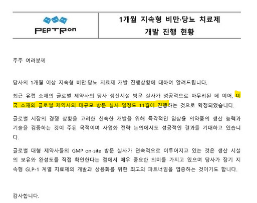 - 펩트론은 GMP 공장, 대량생산, 안정성까지 다 가지고 있음