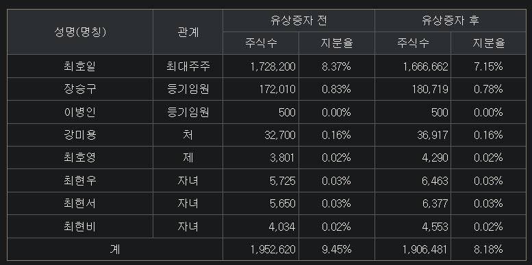 - 최호일 대표의 지분이 7.15%로 매우 낮음