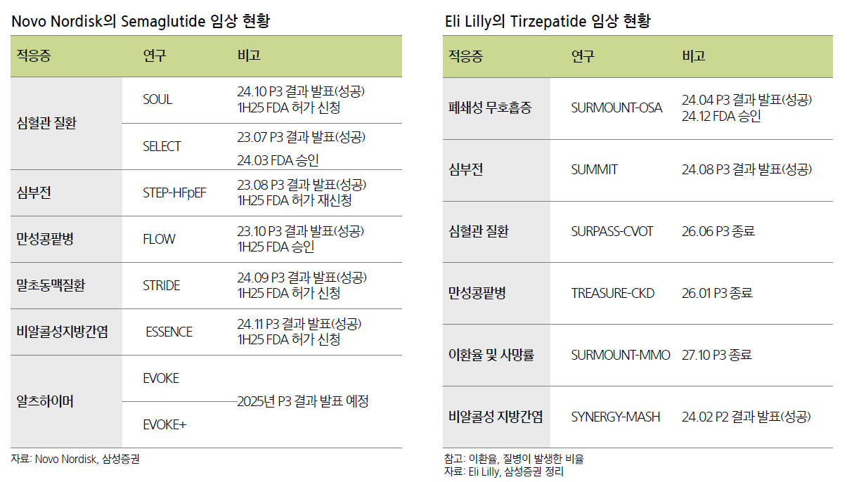 - 일라이릴리의 젭바운드, 노보노디스크의 위고비가 시장을 양분하고 있음