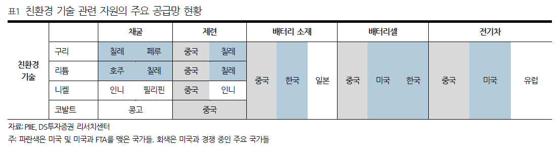 - 리튬, 코발트, 흑연은 특정국가 의존도가 큼