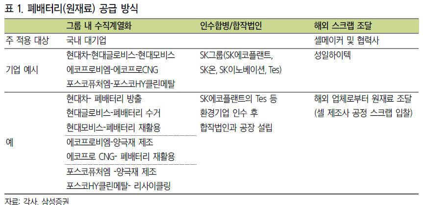 - 에너지저장장치 , 스마트폰 , 노트북 , 소형 전동공구 등 중소형 배터리 시장에서의 폐배터리 확보 계획