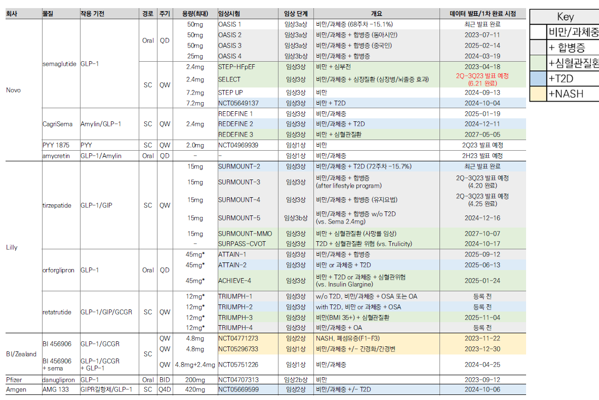 - 주요업체들은 비만 정도에 따라 파이프라인 구축 중