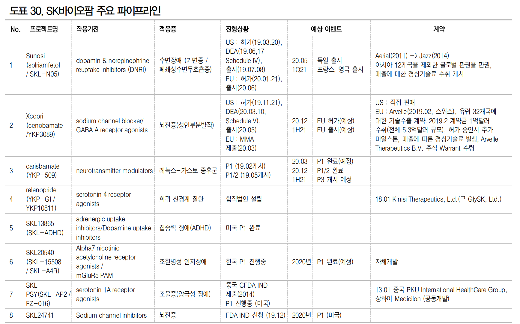 그럼 청약 전에 SK바이오팜의 파이프라인이 무엇이고 그 가치에 대해서 한번 알아보자. 뭘 알아야 사든지 말든지 하니 말이다.