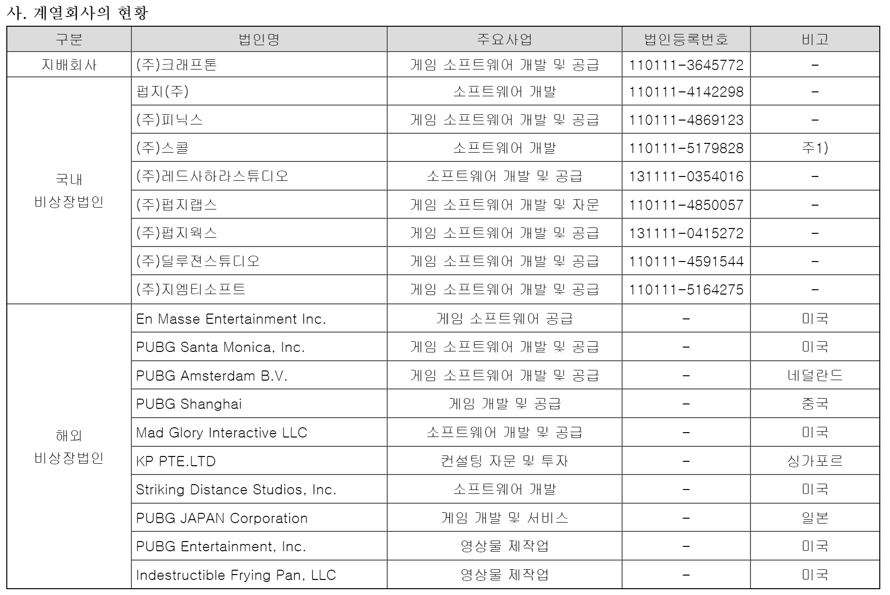 크래프톤의 회사구조를 살펴보면 다음과 같다.
