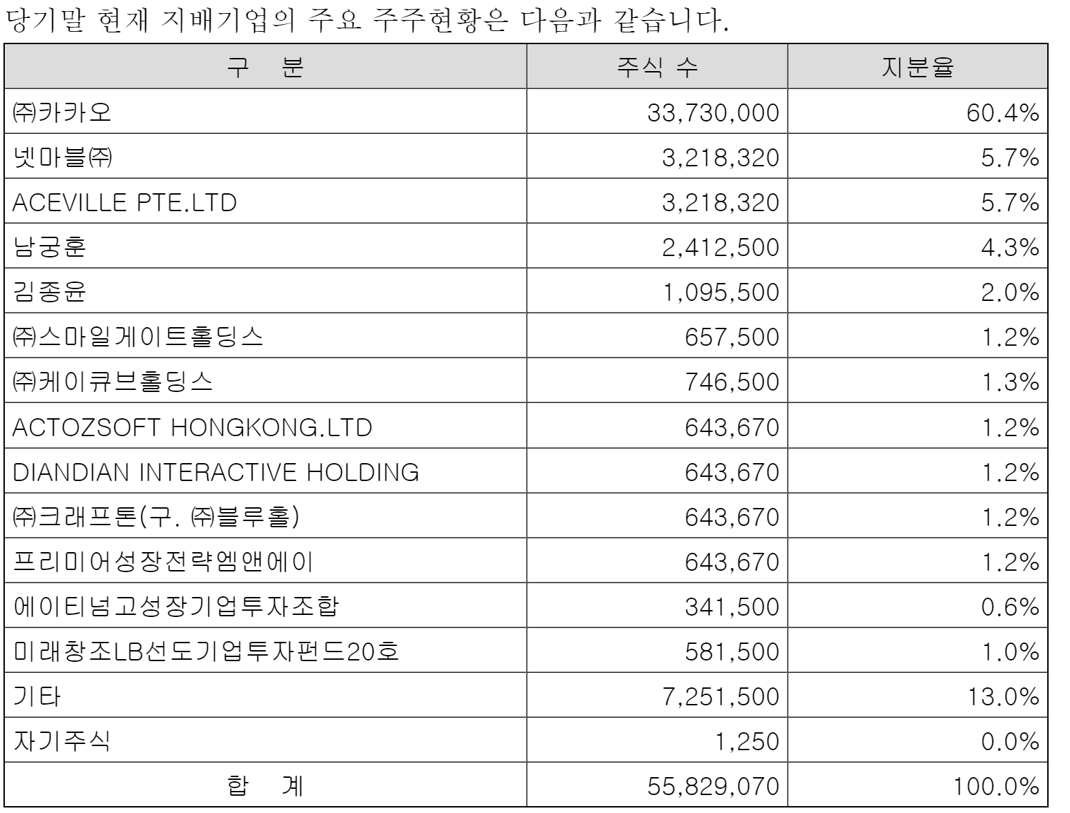 아래자료는 2019년 4월에 제출된 연결감사보고서에 나온 주주현황이다.