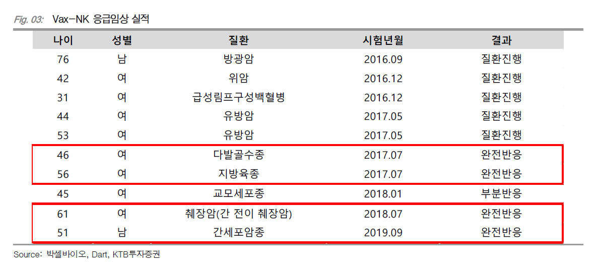 는 진행성간암 2상 진입 후 첫 환자 완전관해(CR)가 나왔다. 임상 1상에서도 총 11명의 진행성간암 환자 중에서 완전관해 4명, 부분관해 1명이 나왔다. 그리고 10명이 생존하였다.