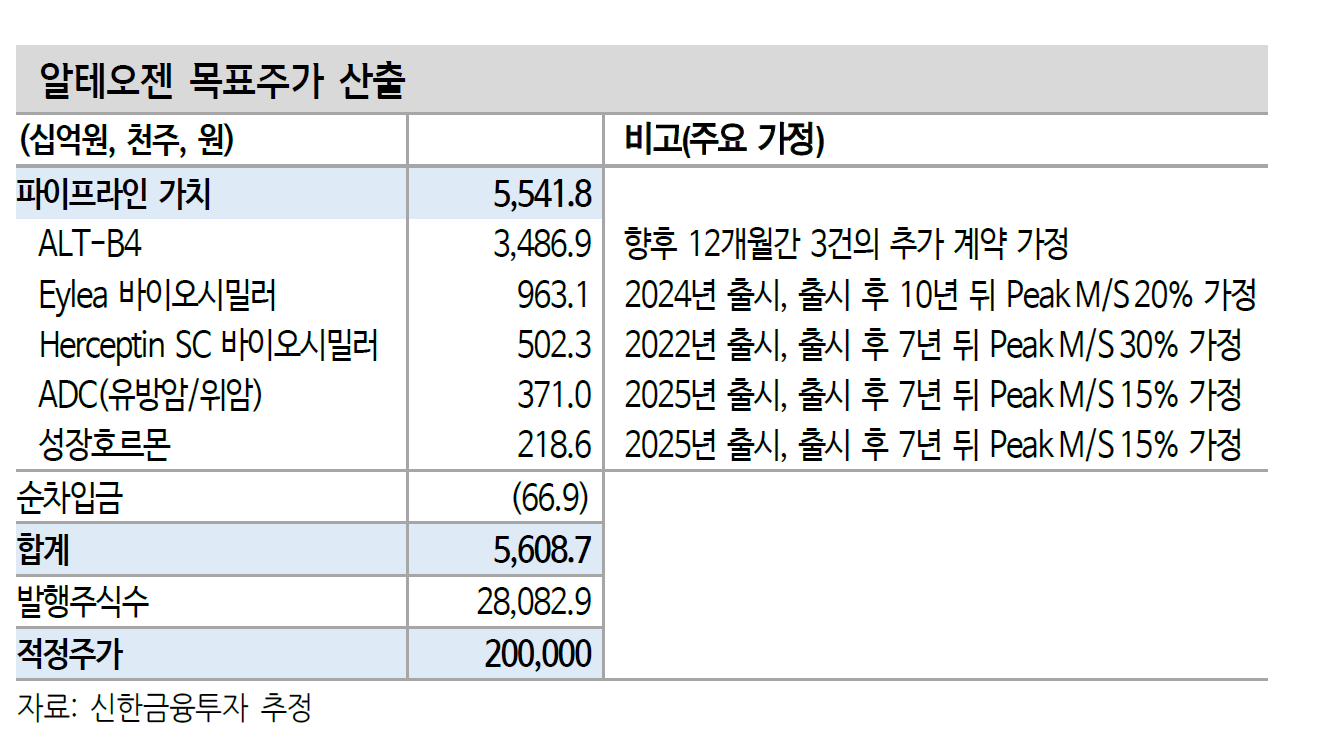 신한금융투자에서 알테오젠에 관한 리포트가 나왔다.