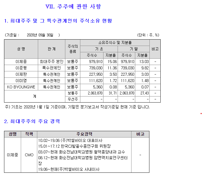 | 성명 | 생년월일 | 최대주주와의 관계 | 주식수(주) | 지분비율(%) | 비고 |