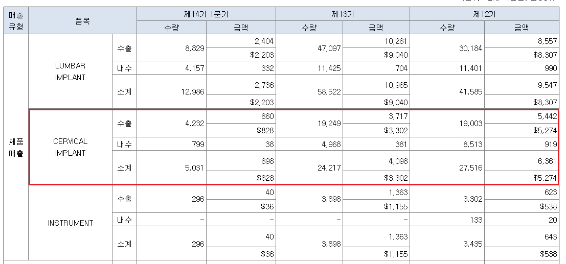 분기보고서를 살펴보면, 코로나 여파로 인해 매출이 작년부터 줄어들었다. 올해 어떤 숫자가 찍히는지를 보면 향후 경추 제품의 성장성을 예측할 수 있어보인다.