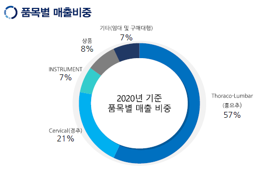 이 특허기술이 적용된 전방 경추 플레이트 제품이 한국 및 미국에서 판매되고 있다고 한다. 실제 2020년 품목별 매출을 보면 경추 제품이 전체매출의 21%를 차지하고 있다.