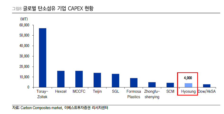 하지만 효성첨단소재는 탄소섬유를 생산하는 유일한 국내기업이기 때문에 소재국산화와 현대차의 안정적인 생산을 위한 멀티업체 납품 관점에서 자세하게 더 살펴볼 필요성은 있다.
