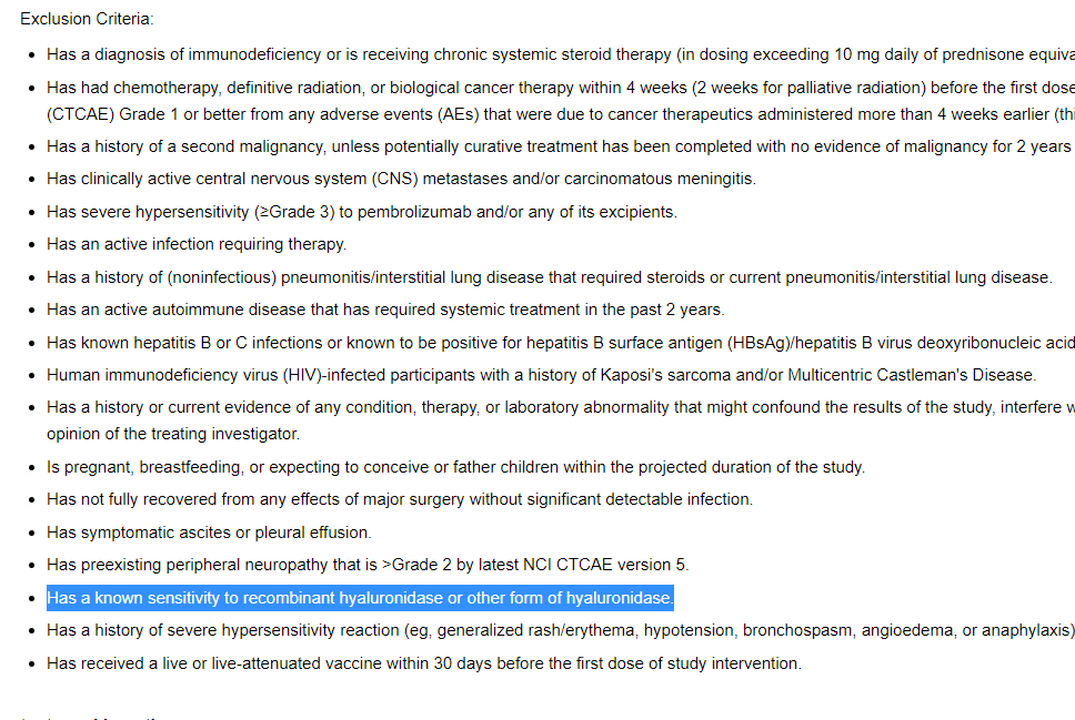 두번째는 재조합 히알루로니다제 또는 다른 형태의 히알루로니다제 과민반응도 제외한다는 것이다. 재조합 히알루로니다제는 알테오젠의 ALT-B4로 추정된다. ALT-B4 말고는 다른걸로는 설명이 되지 않는다.