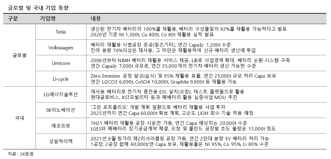 현재 글로벌 배터리 재활용률은 약5% 불과하다. 많은 국내외 기업들이 배터리 재활용 시장에 진입했다.