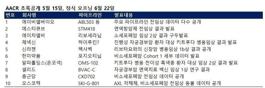 AACR 2020 Virtual Meeting II의 초록이 현지기준 5월 15일에 공개된다.