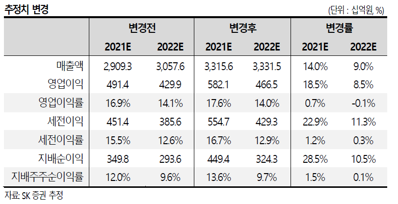3분기 실적을 폴리실리콘 가격 상승을 반영하여 매출 및 영업이익 추정치를 올렸다.