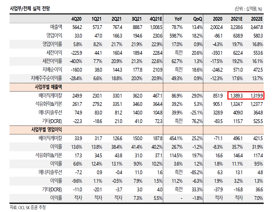 먼저 SK증권에서 나온 OCI리포트를 읽어보자.