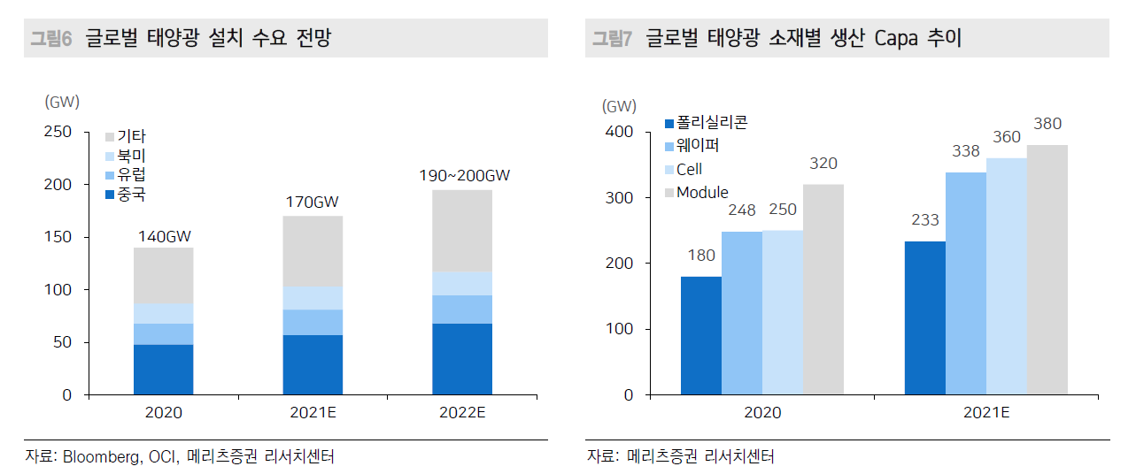 또한, OCI는 말레이시아에서 추가 증설을 통해 전체 폴리실리콘 생산량을 2024년말에는 최대 7만톤까지 증설을 기대한다. 중국 및 미국의 태양광 증설 계획 또한 중국을 제외한 업체 중에서 가장 폴리실리콘 원가경쟁력이 뛰어난 OCI에게 여전히 우호적인 시장이다.