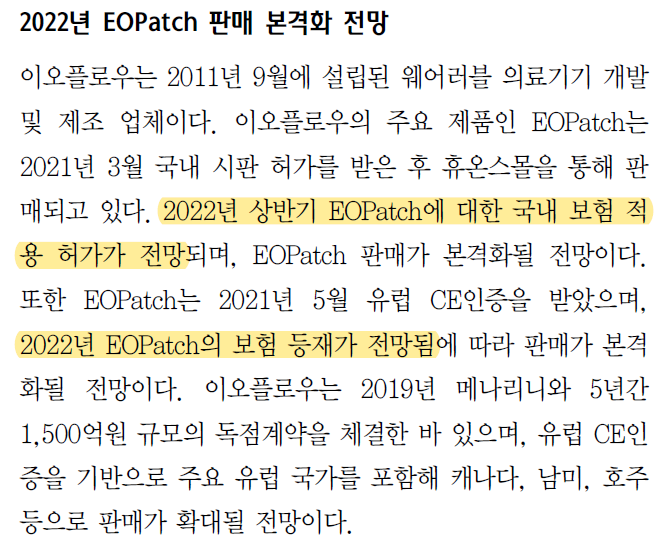 - 2022년 1분기: 이오패치X FDA신청, 이오패치 국내건강보험적용