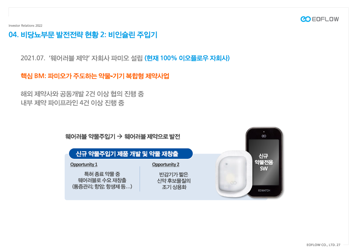 웨어러블 펌프를 활용한 사업의 확장성이 생긴 것이다. 산플레어의 성공 여부가 중요해보인다.