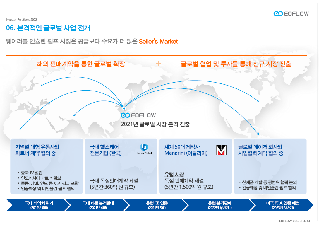- 2022년: 중동 진출, 이오패치 제2형당뇨 임상종료