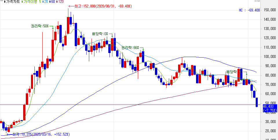 현재 알테오젠 주가는 주봉상으로 보면 기준점을 깼다. 최악의 경우는 더 빠질 수 있다는 것이다.