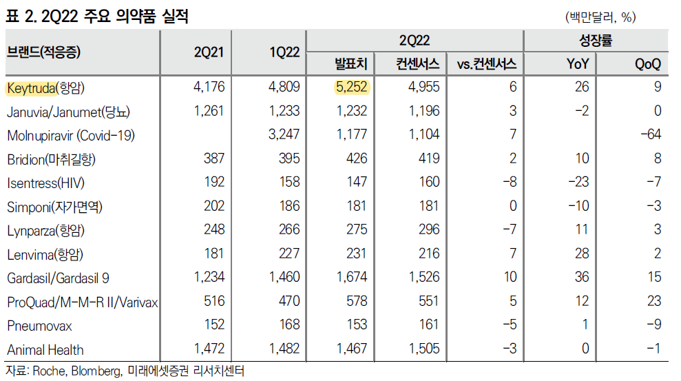 키트루다는 컨센서스보다 실적이 잘 나왔다. 두 말이 필요없는 세계1위 항암의약품이다.