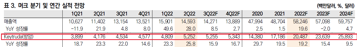 키트루다의 매출성장은 연평균 10% 이상 꾸준히 성장할 것으로 예상하고 있다.
