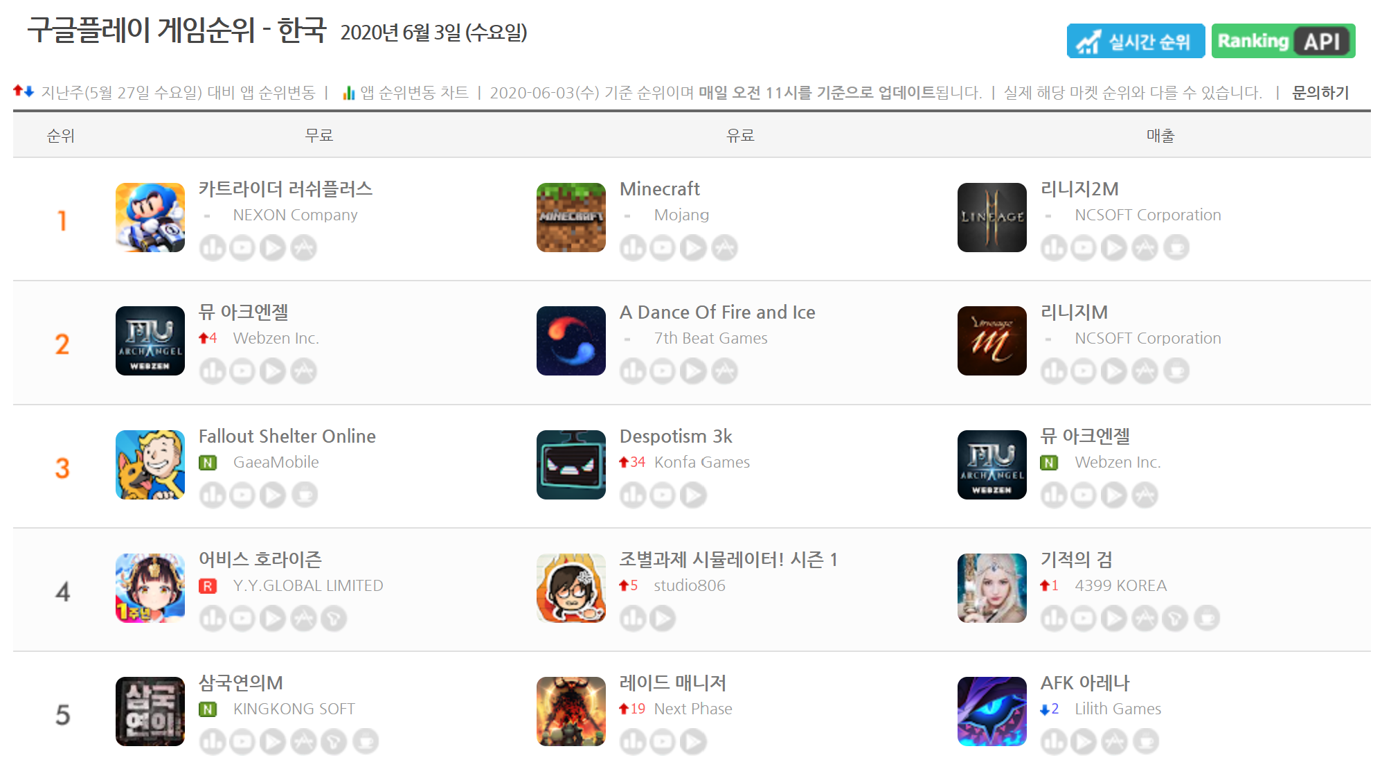 구글플레이, 애플 앱스토어, T스토어, 네이버 앱스토어 등 모든 마켓에서 수집한 빅데이터를 기반으로 게임 순위를 알려주는 게볼루션에서 뮤 아크엔젤이 몇 등인지를 살펴보자.