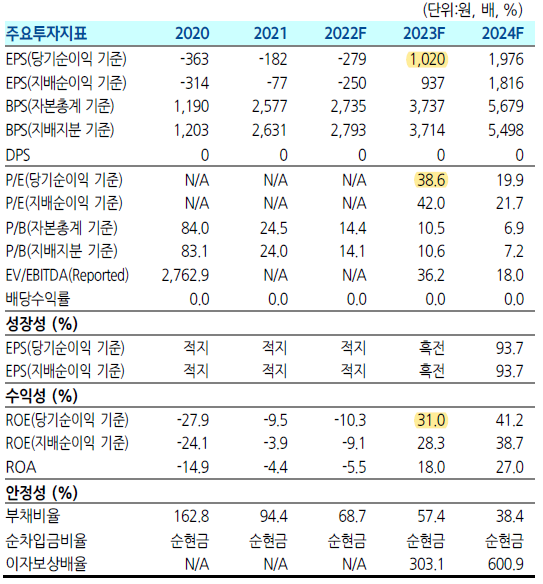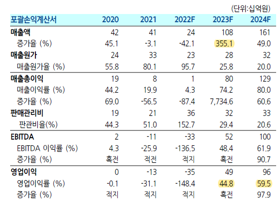 2023년 매출증가율은 355%, 영업이익률은 45% 정도로 추정되고 있다.