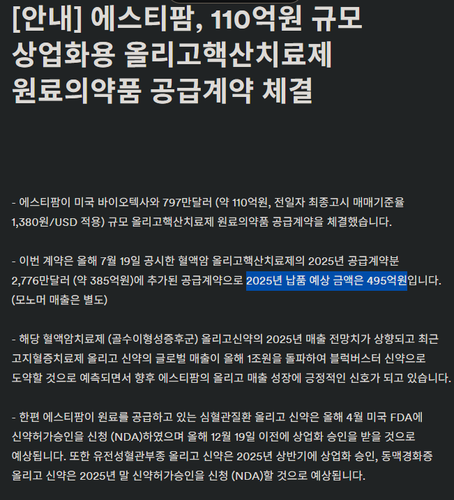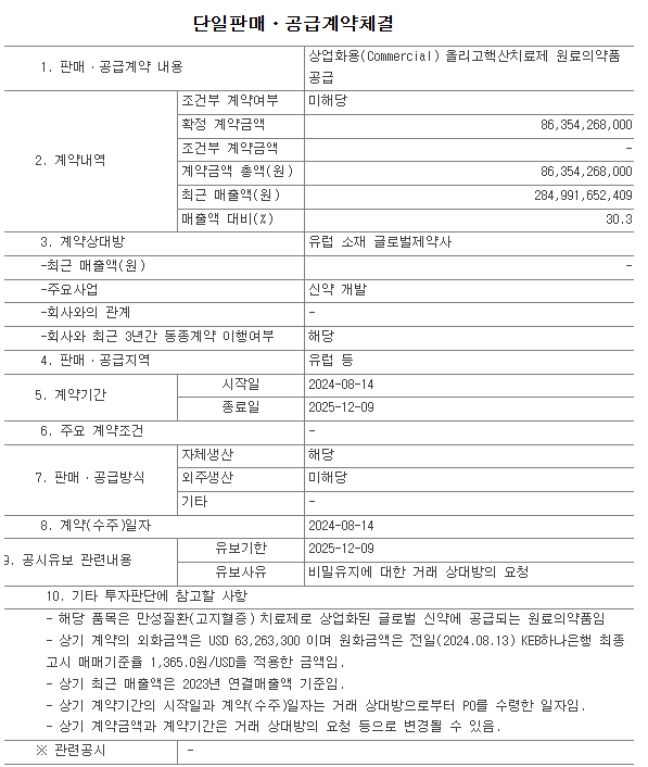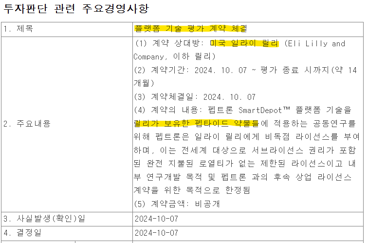- 회사공지 2024.01.25: 릴리와 협의 지속중
