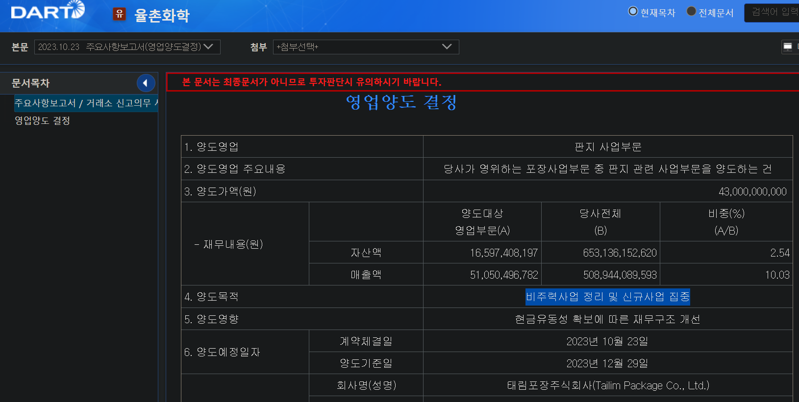 - 회사공지 2023.10.26 : 11월 대규모 방문 실사 예정