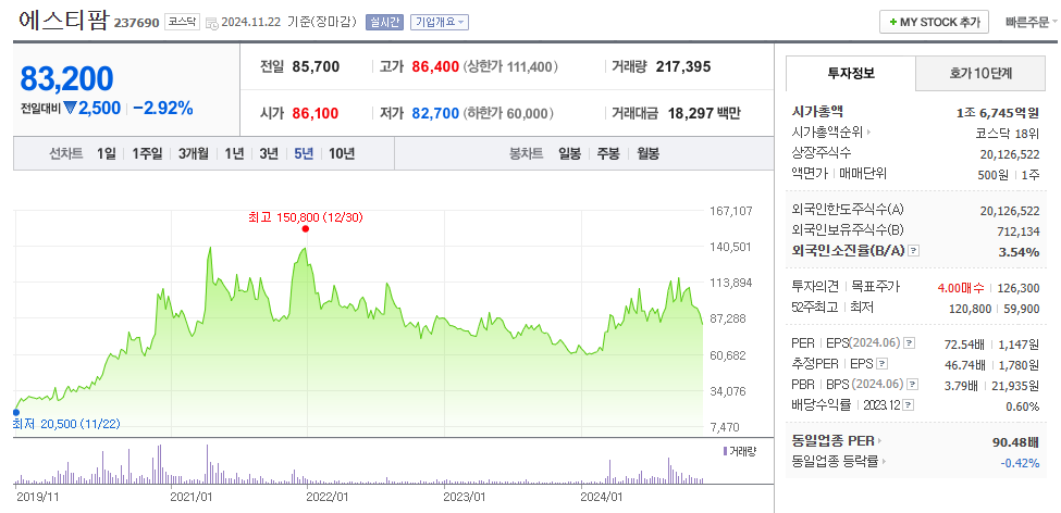 | 생물보안법 수혜주 #에스티팜 (0) | 2024.10.05 |