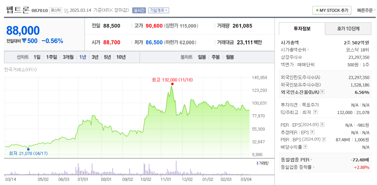 - 펩트론은 GMP 공장, 대량생산, 안정성까지 다 가지고 있음