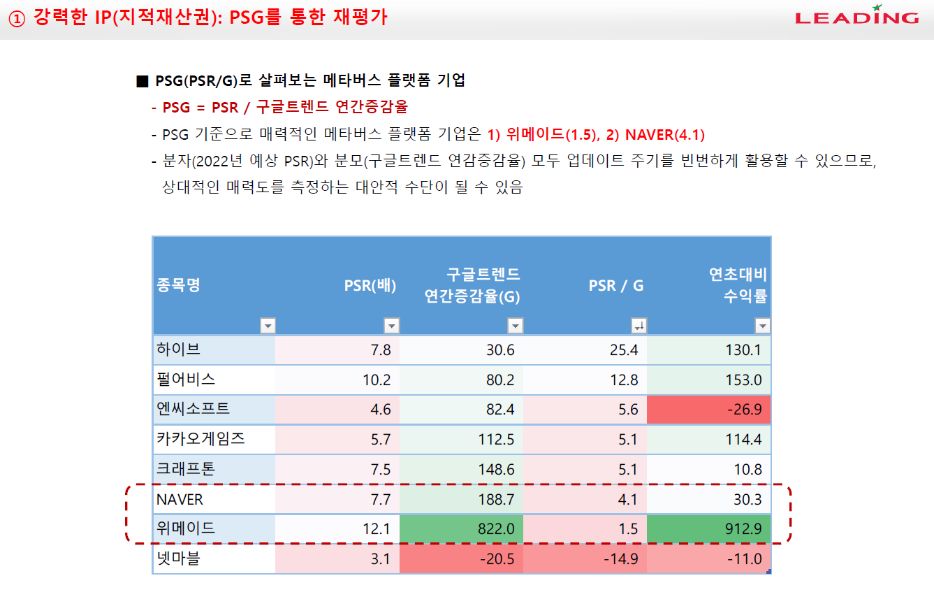 PSG로 보면 단연코 위메이드가 가장 좋다. 위메이드는 실제 짧은 기간 동안에 10배 이상 가는 기염을 토했다.